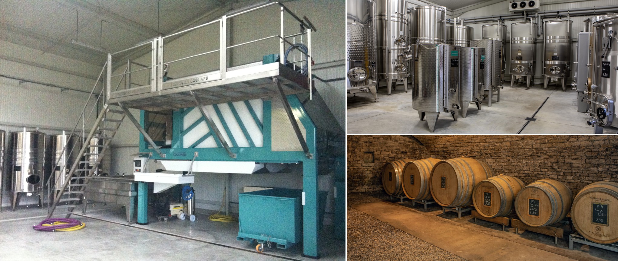 Nous avons à cœur de presser nos raisins le plus délicatement et respectueusement possible afin de ne pas les dénaturer, grâce à l’utilisation d’un pressoir à maie inclinée PAI4000. Toujours dans cet esprit de qualité et de respect, nous élevons nos vins en demi-muids et en cuves inox thermorégulées permettant un contrôle optimal des températures. Ainsi, chacune de nos cuvées est le résultat de nos choix afin de souligner le caractère de notre terroir et de nos cépages, chaque année apportant sa typicité.